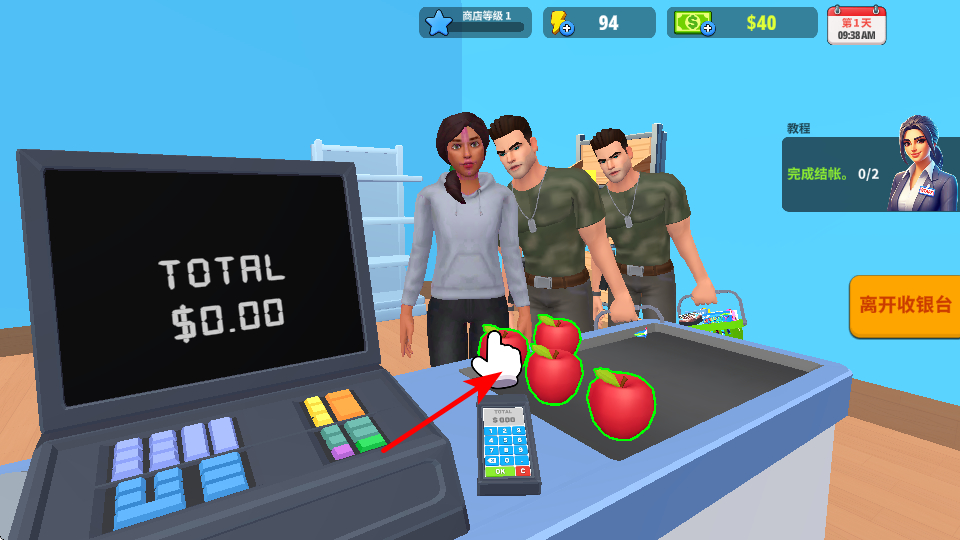 4、为顾客服务时,点击收银台,这是完成交易的基础操作,通过收银台为顾客结算,可获取收益并提升顾客满意度。