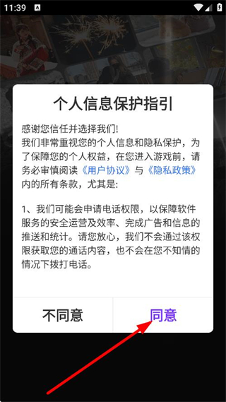 1、在个人信息保护指引弹窗中,点击同意,进入登录注册页面。