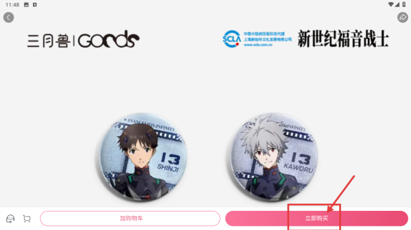 3、在商品列表里,找到新世纪福音战士主题徽章商品条目,点击进入商品详情页。