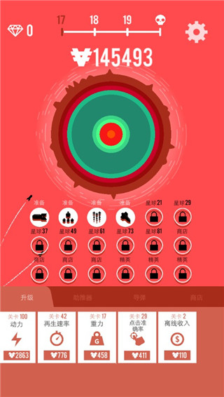 通过摧毁星球获取能量点,解锁新导弹或升级现有导弹属性,丰富后期破坏策略与效率。