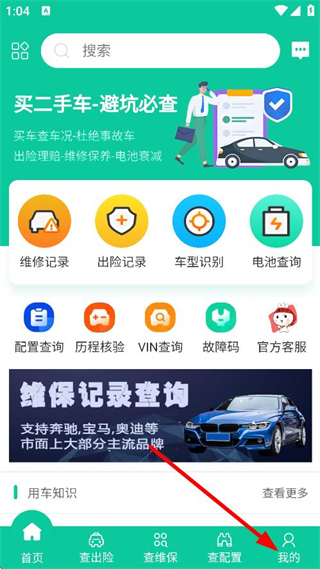 2、在汽修怪的首页,点击底部我的,进入登录注册页面。