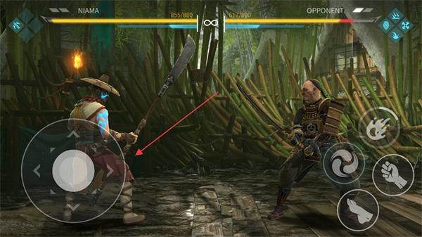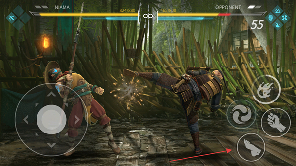采用虚拟控制杆搭配两个动作按钮的操作方式,布局合理且响应灵敏,能轻松完成踢腿、搏击、弹跳、抱摔等基础动作,还可通过组合来释放高精度连招。