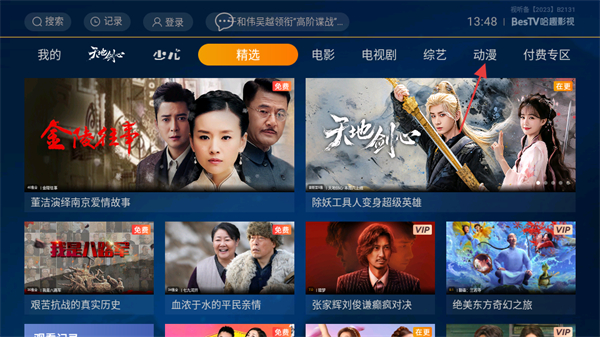 1、打开BesTV哈趣影视,点击动漫分类,可进入动漫频道页面。