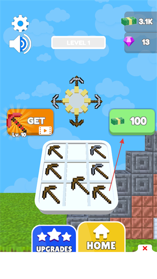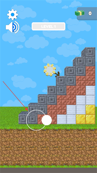 3、消除完场上所有方块建筑即为通过,将获取砖块与钞票奖励。