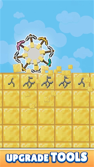 融合挖掘采集与锄头合并升级两大核心玩法,挖掘资源获取金钱,合并相同锄头解锁更高级装备,装备升级反哺挖掘效率,并且兼具了操作感与策略性。