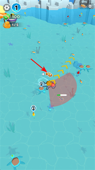 4、在水下区域,操控角色捕捉鱼类,这是获取资源的基础操作,捕捉后可积累鱼类资源,推进游戏进程。
