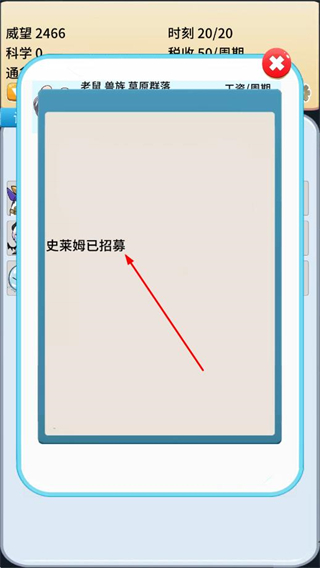 4、招募成功后,会显示员工已招募的提示,此时新员工将加入魔王城的经营团队。