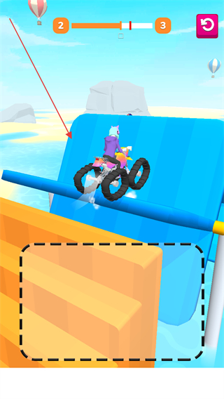 无限制使用辅助道具,面对陡坡、窄道等复杂赛道,可借助道具轻松应对,降低高难度关卡的闯关压力。