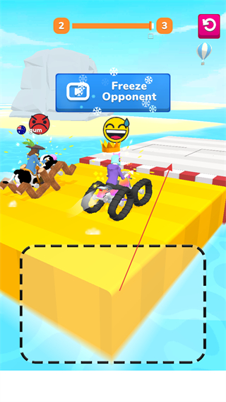 3、利用道具如FreezeOpponent冻结对手,阻碍其前进,争取领先。