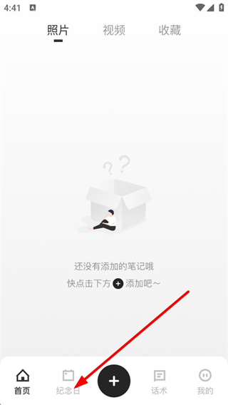 2、在APP首页,点击底部纪念日,进入纪念日页面。