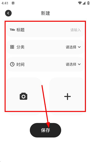 4、在新建纪念日页面,填写标题、选择分类和时间,点击保存,完成纪念日添加。
