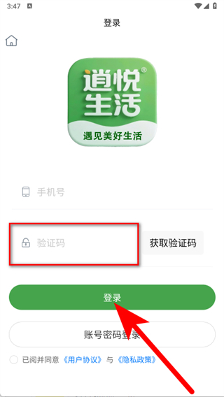 4、输入收到的短信验证码,勾选后,点击登录按钮,完成账号登录。