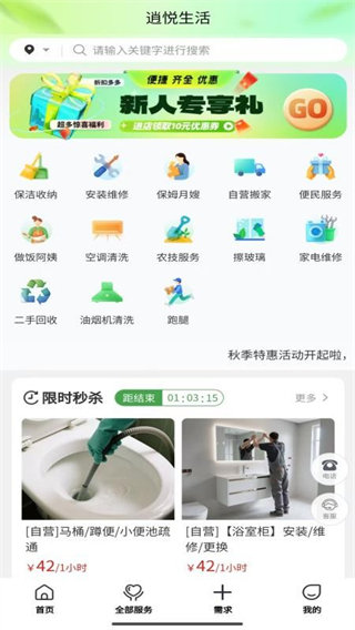 涵盖安装维修、保姆月嫂、自营搬家、开锁保洁等多类服务,覆盖家庭生活全场景,用户无需切换平台,即可找到所需服务,满足多样化生活需求。