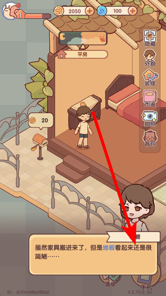 4、关注房屋细节,当地板显得简陋时,可点击装修选项,选择合适的地板样式进行更换,提升房屋整体美观度。