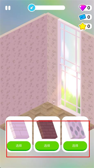 3、在墙面材质选择界面,点击选择按钮,确定墙面材质,完成墙面翻新。