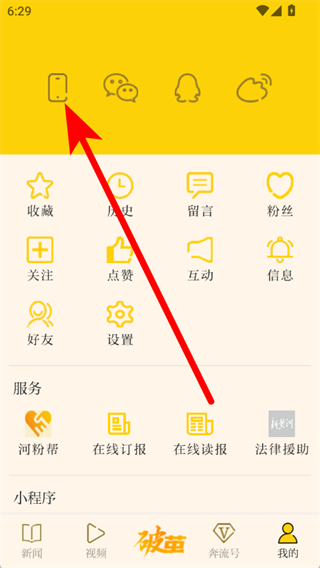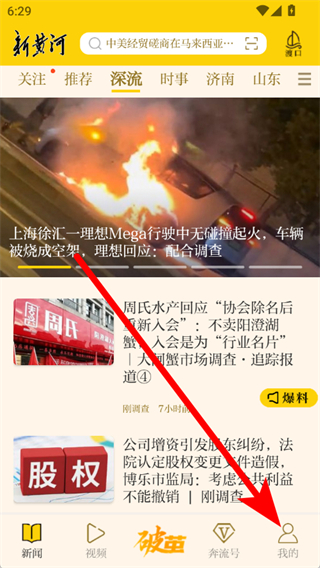 1、打开新黄河,点击底部导航栏的我的,进入个人中心页面。