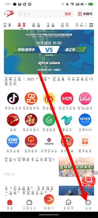 1、打开奔腾融媒,点击底部导航栏的我的,进入个人中心页面。