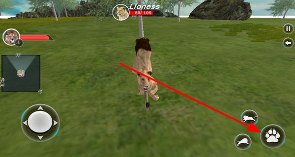 2、点击跳跃飞扑按钮,让狮子向猎物发起跳跃突袭,快速靠近猎物,增加狩猎成功的几率。