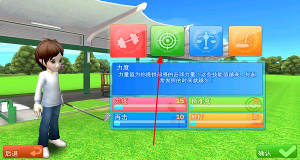 1、选择力度技能,大幅提升击球力量,技能值越高,超常规发球时间越久,为每一次击球提供强劲有力的支持。