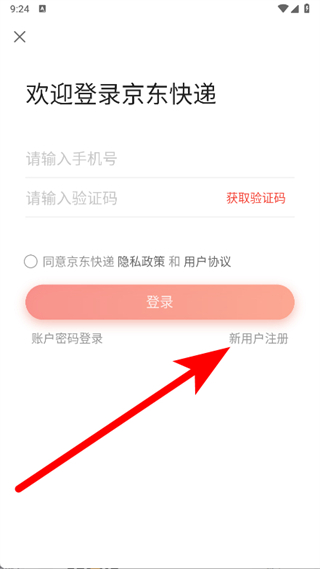 3、在登录主界面,点击新用户注册选项,跳转至新用户注册页面。