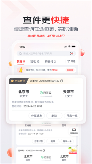 与京东购物平台深度绑定,用户在京东下单后无需额外操作,即可在京东快递软件直接查看物流,实现“购物-查件”无缝衔接,提升整体使用体验。