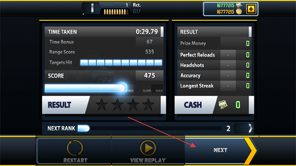 4、完成关卡后,查看时间、分数等数据,点击NEXT进入下一关。