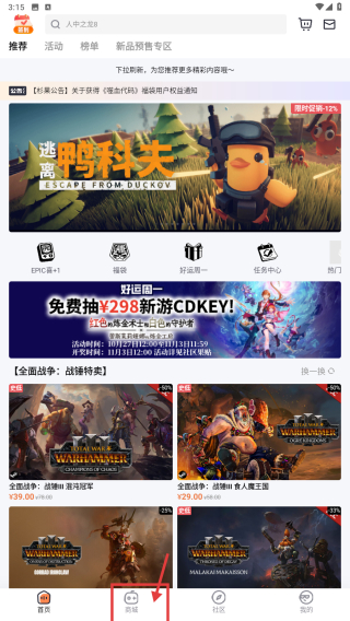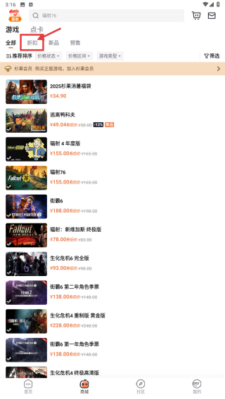 2、在商城页面,点击折扣分类选项,浏览折扣游戏列表。