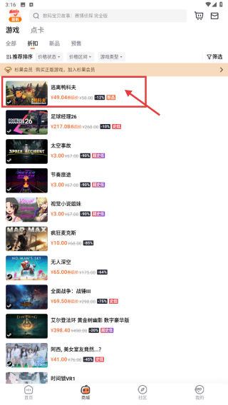 3、在折扣游戏列表里,找到逃离鸭科夫游戏条目,点击进入游戏详情页。