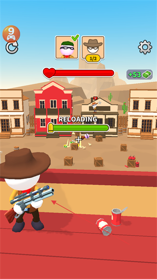 每个关卡场景风格不同,从开阔荒漠到紧凑小镇,场景变化带来新鲜射击体验,避免玩法单调。