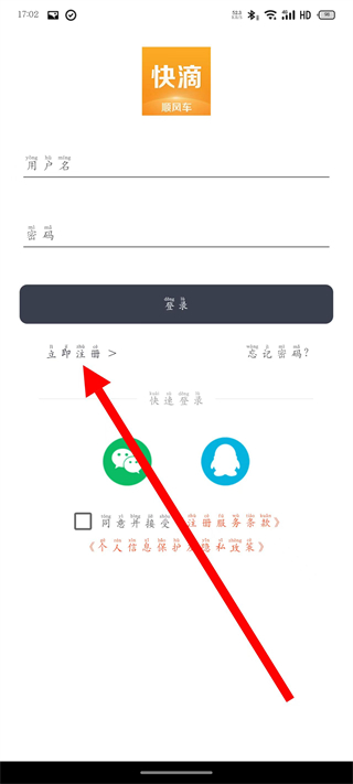 2、在登录界面,点击立即注册,进入账号注册页面。