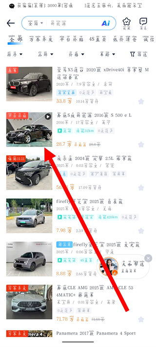 3、在车型列表页中,点击感兴趣的二手车车型,进入车型详情页。