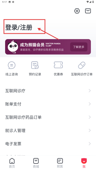1、打开医疗类应用,点击底部我选项,进入个人中心页面。