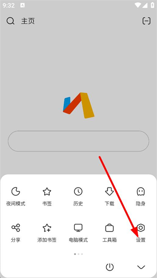 2、在展开的功能选项中,点击设置,进入设置页面。