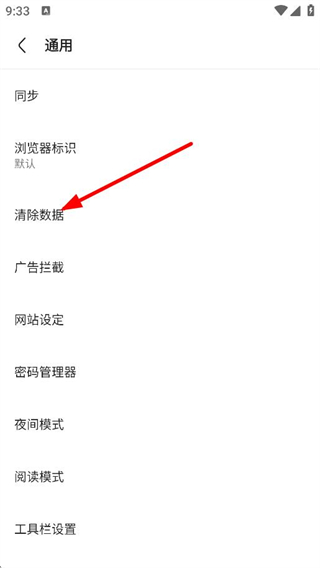 4、在通用设置页面,点击清除数据,即可进行数据清除操作。