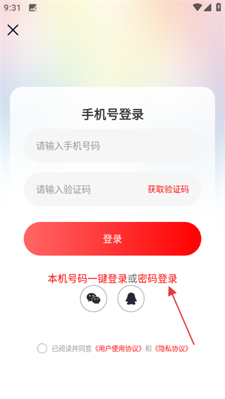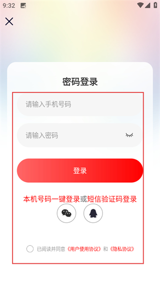 4、在密码登录页面,输入信息,同意协议后点击登录可完成账号登录。