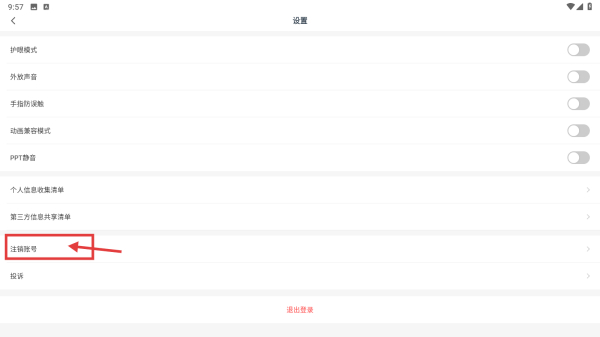3、在设置页面,点击注销账号选项,进入注销账号页面。