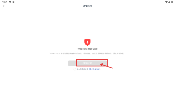 4、在注销账号页面,点击注销账号选项,提交账号注销申请。