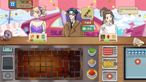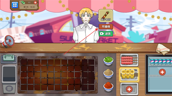 4、当食材不足时,可选择进货补充食材,确保餐厅持续经营,同时可根据情况选择是否接待顾客。