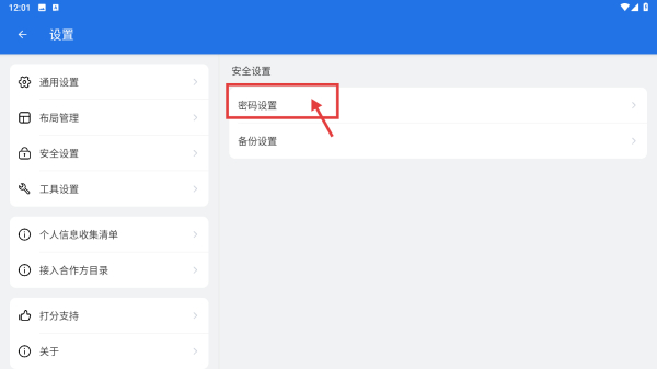 3、在安全设置页面,点击密码设置选项,进入密码设置页面。