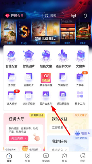 1、在APP首页,点击图片去水印,进入图片擦除页面。
