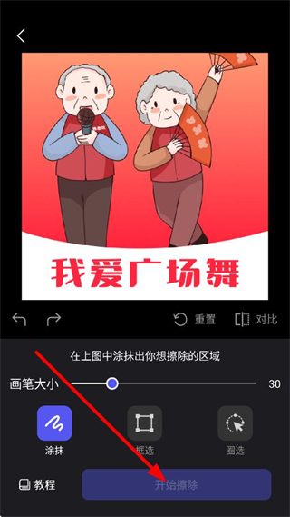 3、涂抹需要擦除的区域后点击开始擦除,执行去水印操作。
