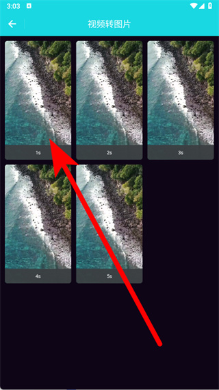3、在视频转图片界面,点击选择需要的时间点画面。