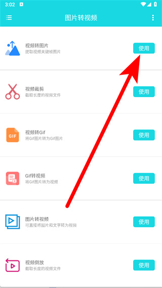 1、打开图片转视频,点击视频转图片右侧的使用。