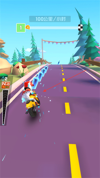 采用3D卡通画风,骑士与摩托车造型灵动可爱,色彩搭配鲜艳明快,特效简洁却不失冲击力,整体视觉轻松活泼,兼顾休闲感与视觉的吸引力。