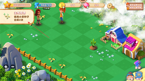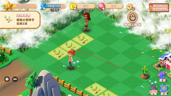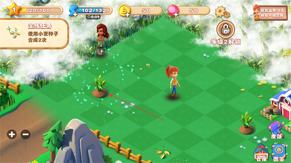 4、持续合成作物,完成任务目标,提升农场等级,解锁更多农场区域和作物种类,打造繁盛农场。