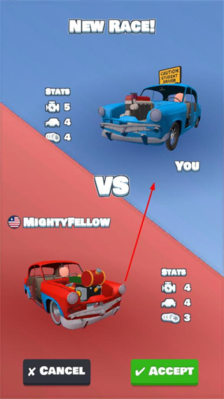 4、点击RACE按钮参与赛车对决,与其他玩家的赛车比拼,获胜后获取奖励。
