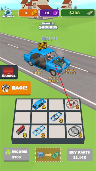赛车组装具有策略多样性,玩家可以选择不同的零件升级顺序,比如优先升级引擎提升赛车速度,或者优先升级车轮提升行驶稳定性,让玩家组装赛车时能有更多思考。