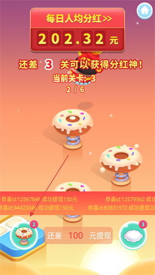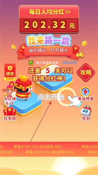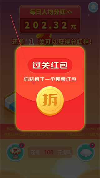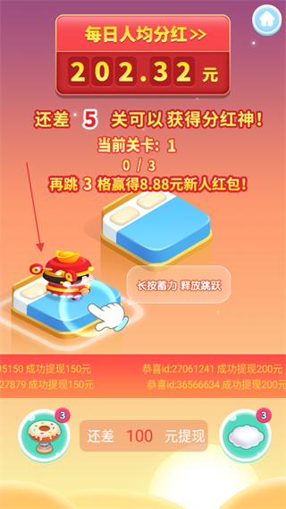 4、每跳到指定的方块物品数量,将会获得一个过关红包。