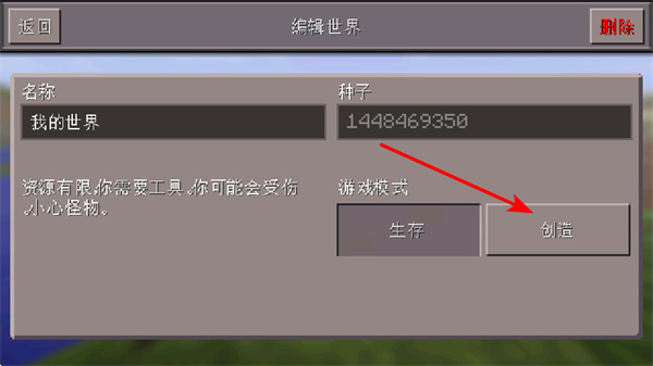 3、在编辑世界界面,点击创造模式选项,可切换到创造模式,在该模式下可拥有无限资源,自由建造,体验乐趣。