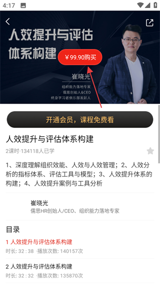 4、在课程详情页面,可选择99.90购买,购买该课程并学习。